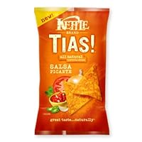 I've been a big fan of Kettle's tasty tortilla and potato chips for a long time, and this one continues their strong tradition as a vanguard snack maker. There are only a few small deficiencies you might want to consider. First, the overall level of seasoning powder is very high or excessive, so your fingers tend to get that "cheeble" kind of deposit that you might get from eating cheese puffs. Second, I would like to see them add brown rice to these to increase the nutritional quality. And finally, is the "yeast extract" used actually a form of MSG? So far I haven't experienced any negative reaction from it, so it must be ok. Overall I find these to be a great deal, very tasty (fairly spicy but generally not overpowering), mostly organic -- and you get a big 8 ounce bag which lasts me about four days. Plus you're getting a whole assortment of healthy herbs and seasonings. What I usually do is crush down the "final sediment" of the bag and put it into an old spice shaker. Then you can use it to season your food or soup. Thanks to Kettle and Amazon for making these available -- and at a price this low, you'd better order early and often!!Kettle Brand Tias All Natural Tortilla Chips Salsa Picante, 8-Ounce (Pack of 6) Overview