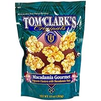 I am very disappointed with this product. There may be two macadamia nuts in each bag. Macadamia nuts are listed as the forth ingredient which cannot possibly be true. It is just heavily coated candied popcorn. I will not buy this again and have had to throw this popcorn out. What a shame.Tom Clark Originals Macadamia Gourmet, 10-Ounce Bags (Pack of 12) Overview